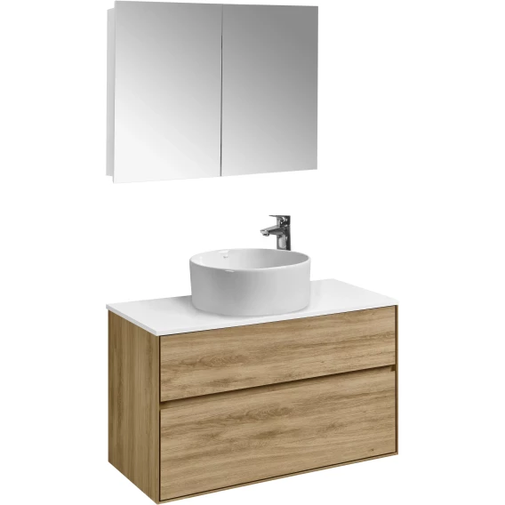 Механизм доводчика, Ящик, Полочка, Зеркало-шкаф, Система "Push-to-open", Столешница, Тумба под раковину, Раковина