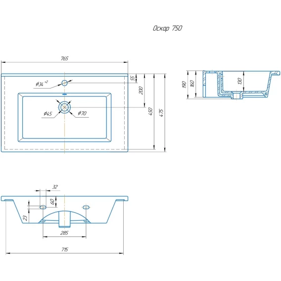 Раковина 76,5x47,5 см Onika Оскар 4640021062210