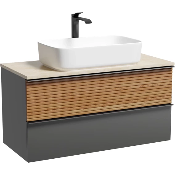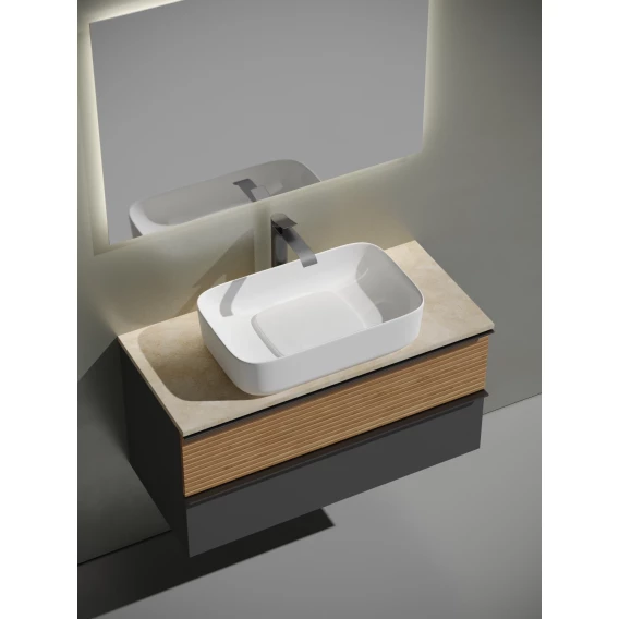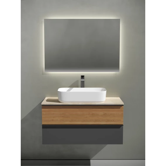 Механизм доводчика, Ящик, Ручки, LED подсветка, Сенсорный выключатель, Зеркало, Столешница, Тумба под раковину, Раковина, Вилка