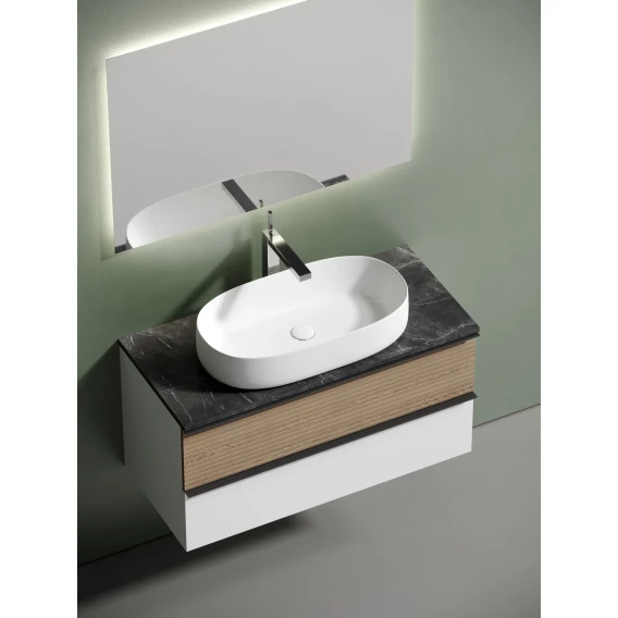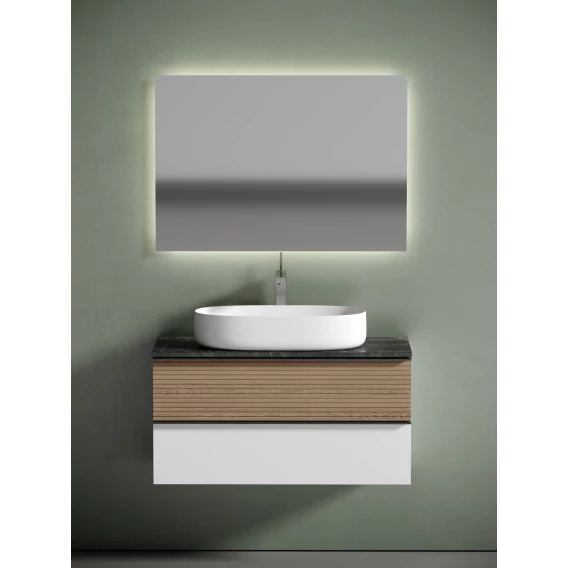 Механизм доводчика, Ящик, Ручки, LED подсветка, Сенсорный выключатель, Зеркало, Столешница, Тумба под раковину, Раковина, Вилка