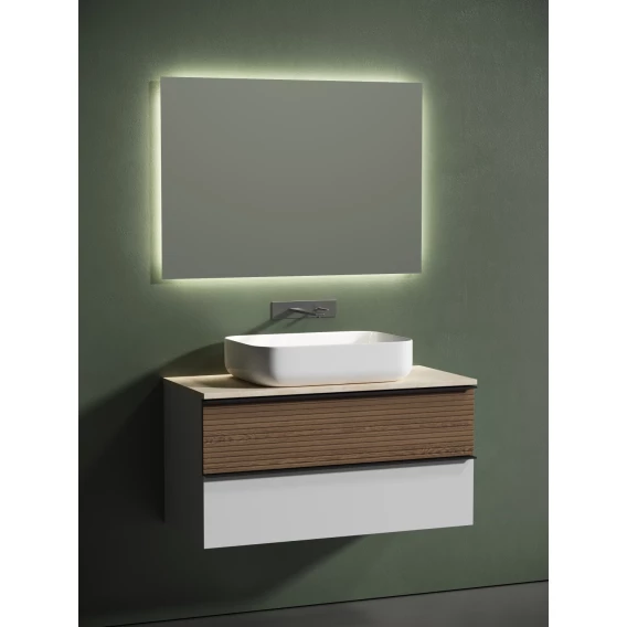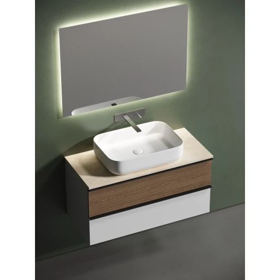 Механизм доводчика, Ящик, Ручки, LED подсветка, Сенсорный выключатель, Зеркало, Столешница, Тумба под раковину, Раковина, Вилка