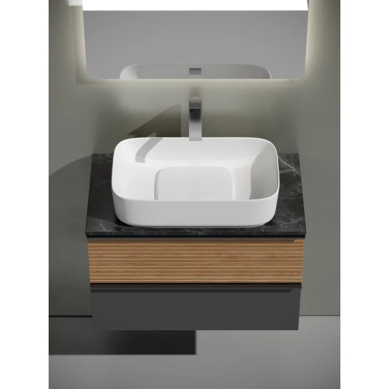 Механизм доводчика, Ящик, Ручки, LED подсветка, Сенсорный выключатель, Зеркало, Столешница, Тумба под раковину, Раковина, Вилка