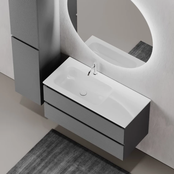 Крепление, Механизм доводчика, Ящик, LED подсветка, Сенсорный выключатель, Зеркало, Тумба под раковину, Раковина