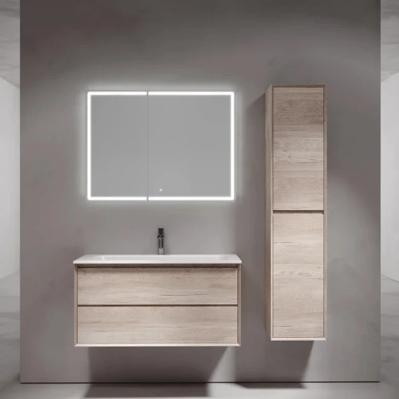 Крепление, Механизм доводчика, Ящик, Полочка, LED подсветка, Зеркало-шкаф, Сенсорный выключатель, Тумба под раковину, Раковина