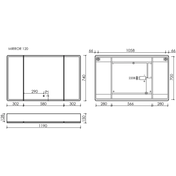 Крепление, Механизм доводчика, Ящик, Полочка, LED подсветка, Зеркало-шкаф, Сенсорный выключатель, Тумба под раковину, Раковина