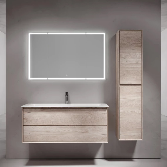 Крепление, Механизм доводчика, Ящик, Полочка, LED подсветка, Зеркало-шкаф, Сенсорный выключатель, Тумба под раковину, Раковина