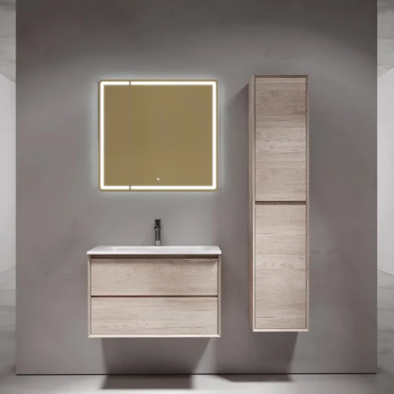Крепление, Механизм доводчика, Ящик, Полочка, LED подсветка, Зеркало-шкаф, Сенсорный выключатель, Тумба под раковину, Раковина