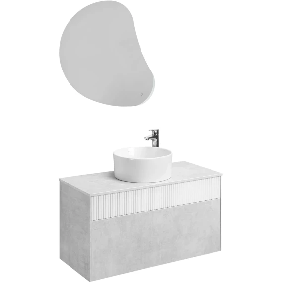 Ящик, Подсветка, Сенсорный выключатель, Система "Push-to-open", Функция анти-пар, Зеркало, Столешница, Тумба под раковину, Раковина