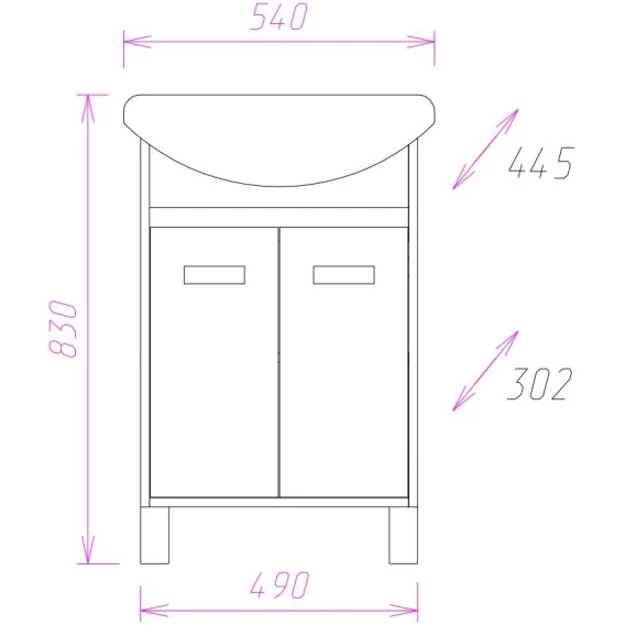 Механизм доводчика, Полочка, Ручки, Подсветка, Зеркало-шкаф, Ножки, Тумба под раковину, Раковина