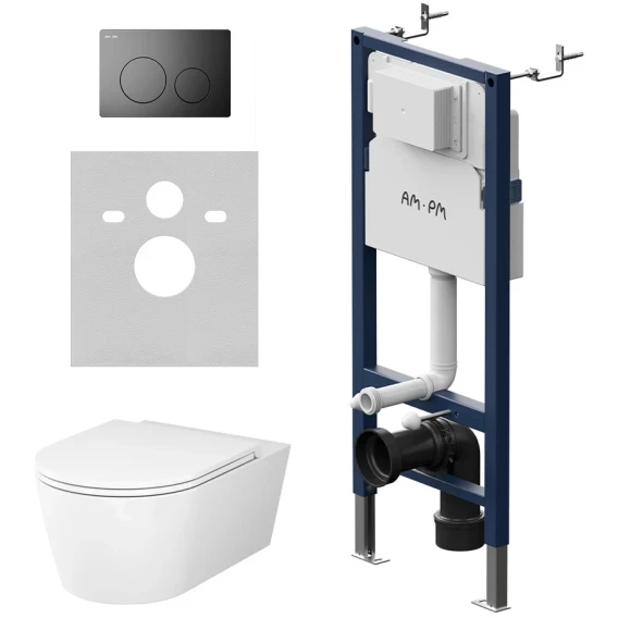 Крепление, Кнопка смыва, Инсталляционная система, Звукоизолирующая прокладка, Унитаз, Сиденье с микролифтом