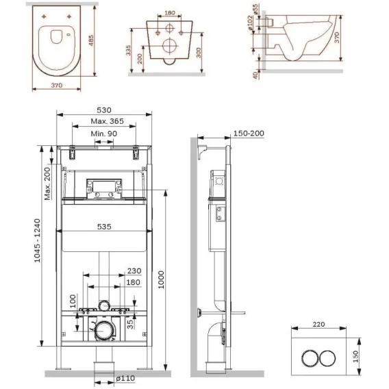 Крепление, Кнопка смыва, Инсталляционная система, Звукоизолирующая прокладка, Унитаз, Сиденье с микролифтом