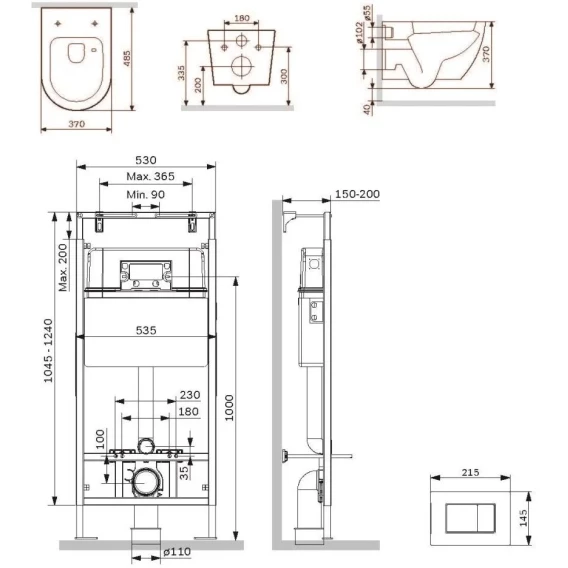 Крепление, Кнопка смыва, Инсталляционная система, Звукоизолирующая прокладка, Унитаз, Сиденье с микролифтом