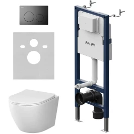 Крепление, Кнопка смыва, Инсталляционная система, Звукоизолирующая прокладка, Унитаз, Сиденье с микролифтом