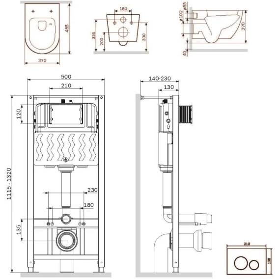 Крепление, Кнопка смыва, Инсталляционная система, Звукоизолирующая прокладка, Унитаз, Сиденье с микролифтом