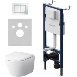 Крепление, Кнопка смыва, Инсталляционная система, Звукоизолирующая прокладка, Унитаз, Сиденье с микролифтом