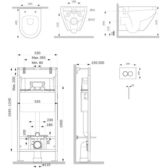 Крепление, Кнопка смыва, Инсталляционная система, Звукоизолирующая прокладка, Унитаз, Сиденье с микролифтом