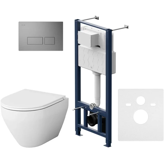 Крепление, Кнопка смыва, Инсталляционная система, Звукоизолирующая прокладка, Унитаз, Сиденье с микролифтом
