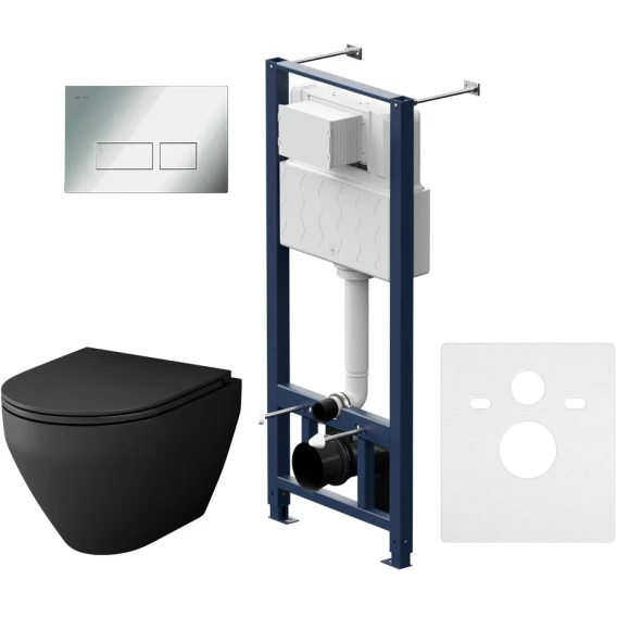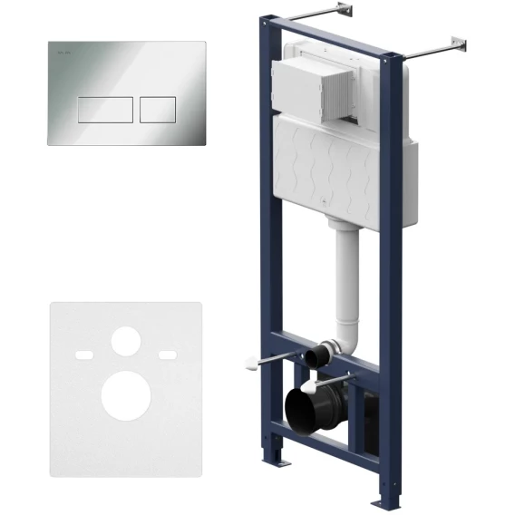Крепление, Кнопка смыва, Инсталляционная система, Звукоизолирующая прокладка, Унитаз, Сиденье с микролифтом