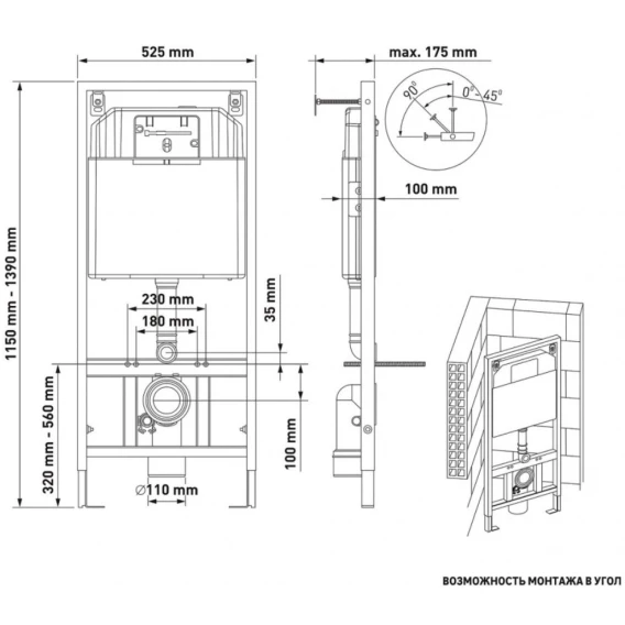 Крепление, Кнопка смыва, Инсталляционная система, Унитаз, Сиденье с микролифтом