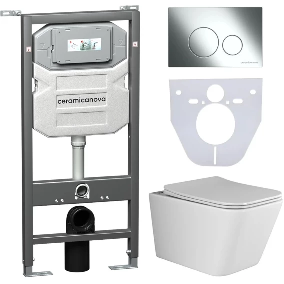Крепление, Кнопка смыва, Инсталляционная система, Звукоизолирующая прокладка, Унитаз, Сиденье с микролифтом