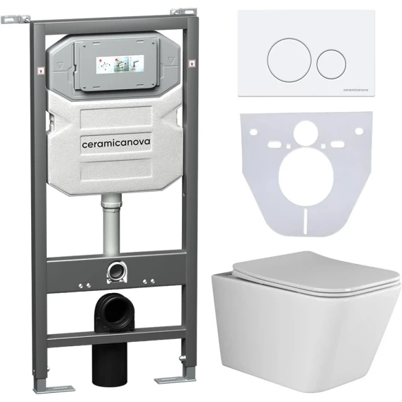 Крепление, Кнопка смыва, Инсталляционная система, Звукоизолирующая прокладка, Унитаз, Сиденье с микролифтом