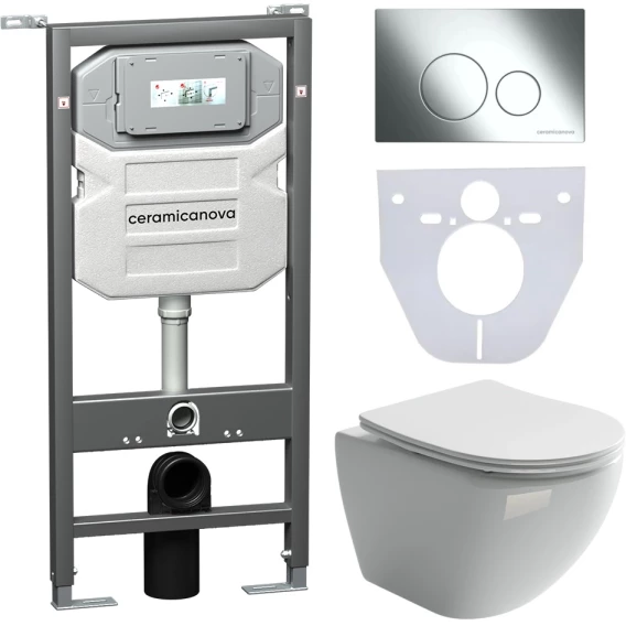 Крепление, Кнопка смыва, Инсталляционная система, Звукоизолирующая прокладка, Унитаз, Сиденье с микролифтом