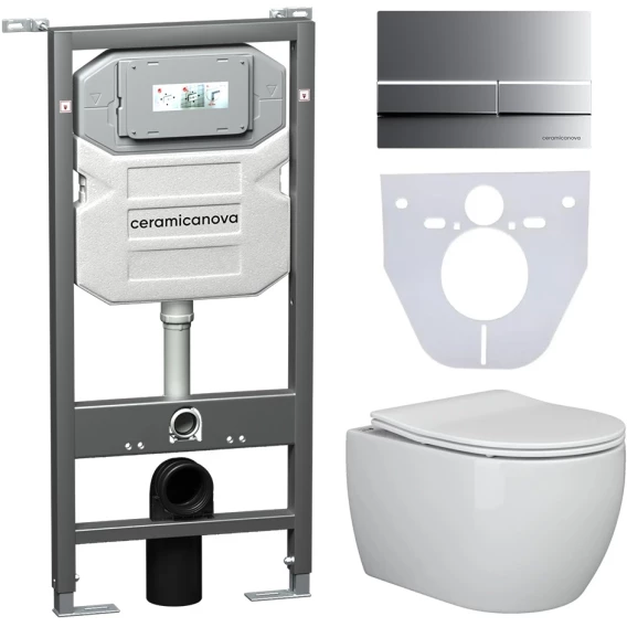 Крепление, Кнопка смыва, Инсталляционная система, Звукоизолирующая прокладка, Унитаз, Сиденье с микролифтом