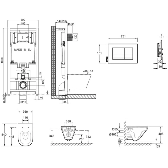 Крепление, Кнопка смыва, Инсталляционная система, Унитаз, Сиденье с микролифтом