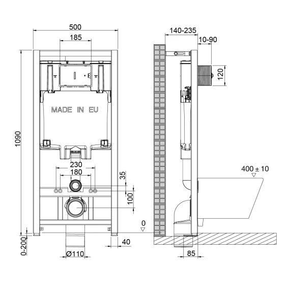 Инсталляция для унитаза Iberica Blanca Silencio Esti-S IB001.852 с кнопкой смыва, хром