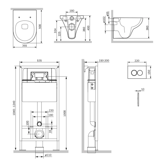 Крепление, Кнопка смыва, Инсталляционная система, Звукоизолирующая прокладка, Унитаз, Сиденье с микролифтом