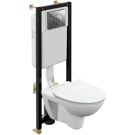 Крепление, Кнопка смыва, Инсталляционная система, Звукоизолирующая прокладка, Унитаз, Сиденье с микролифтом