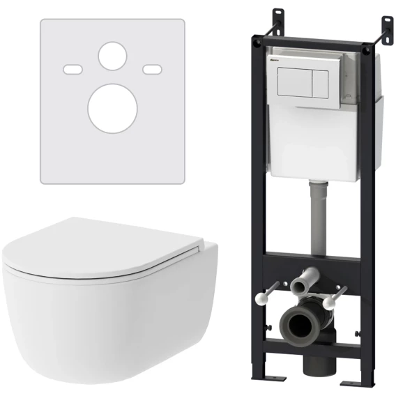 Крепление, Кнопка смыва, Инсталляционная система, Звукоизолирующая прокладка, Унитаз, Сиденье с микролифтом
