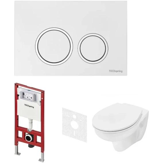 Крепление, Кнопка смыва, Инсталляционная система, Звукоизолирующая прокладка, Унитаз, Сиденье с микролифтом