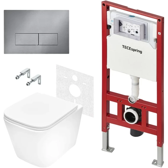 Крепление, Кнопка смыва, Инсталляционная система, Звукоизолирующая прокладка, Унитаз, Сиденье с микролифтом