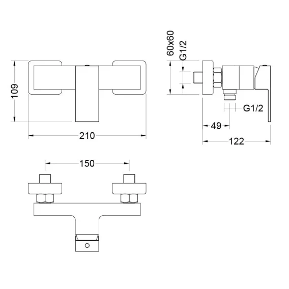Крепление, Гибкая подводка, Металлическая розетка, Эксцентрики, Душевой шланг, Душевая лейка, Держатель для душевой лейки, Смеситель, Штанга душевая