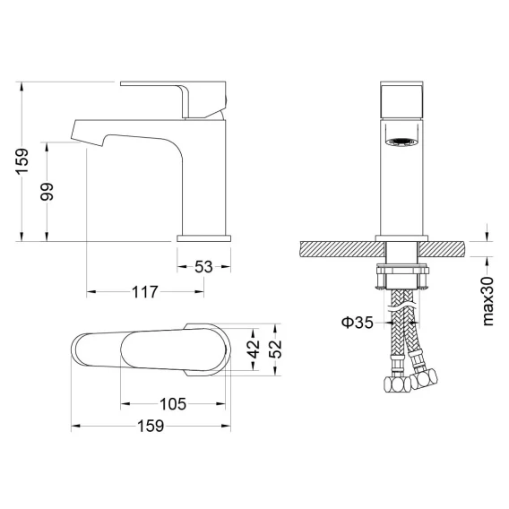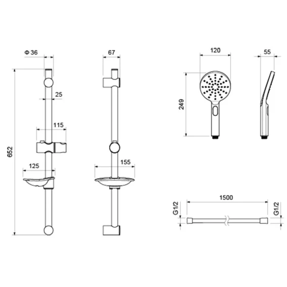 Крепление, Аэратор, Гибкая подводка, Металлическая розетка, Эксцентрики, Душевой шланг, Душевая лейка, Держатель для душевой лейки, Смеситель, Мыльница, Штанга душевая