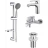 Крепление, Аэратор, Гибкая подводка, Донный клапан, Металлическая розетка, Эксцентрики, Душевой шланг, Душевая лейка, Держатель для душевой лейки, Смеситель, Мыльница, Штанга душевая