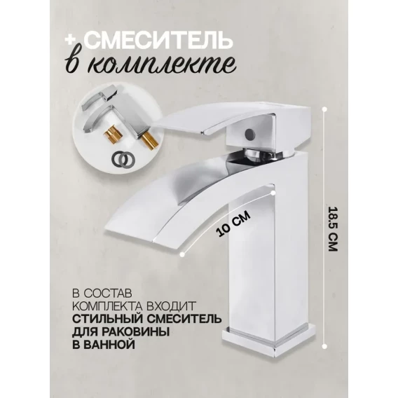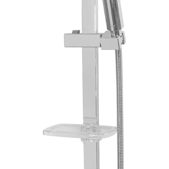 Крепление, Аэратор, Гибкая подводка, Металлическая розетка, Эксцентрики, Душевой шланг, Душевая лейка, Держатель для душевой лейки, Смеситель, Мыльница, Штанга душевая