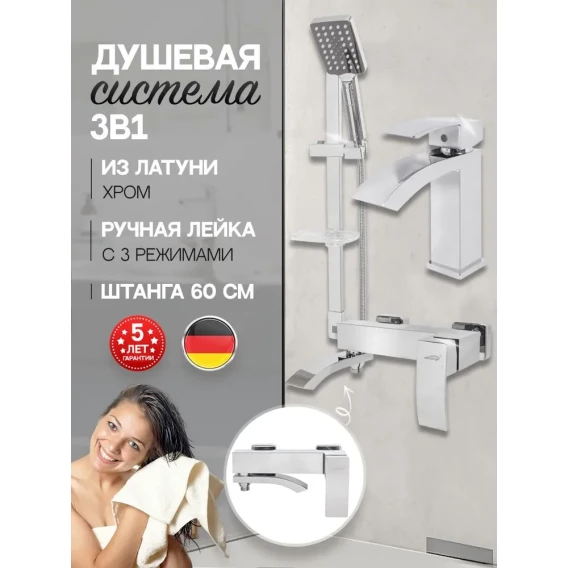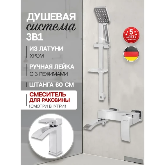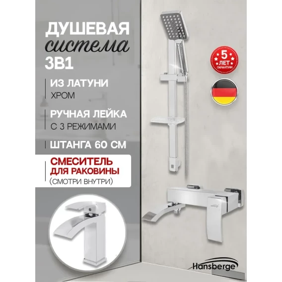 Комплект смесителей Hansberge Cubito H7077C с душевым гарнитуром, хром