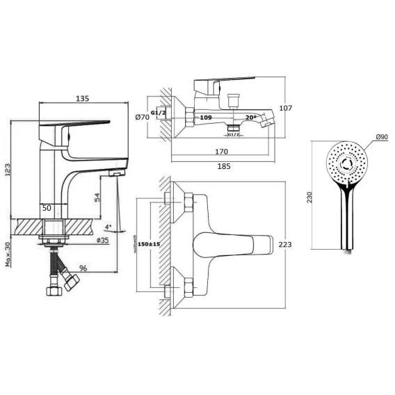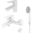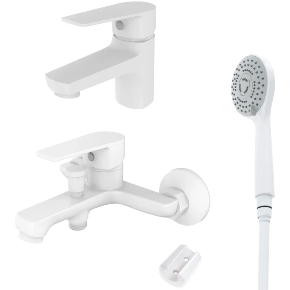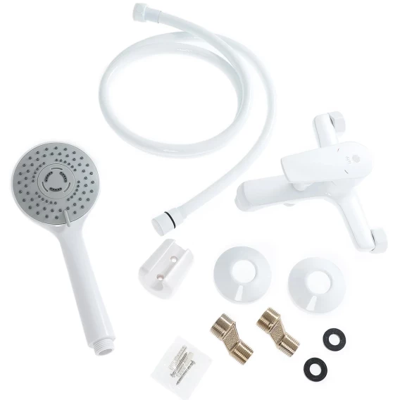 Крепление, Аэратор, Гибкая подводка, Металлическая розетка, Эксцентрики, Душевой шланг, Душевая лейка, Держатель для душевой лейки
