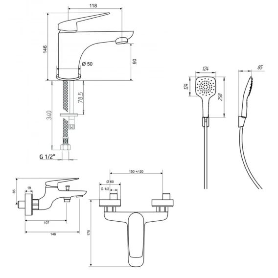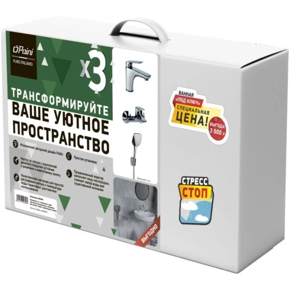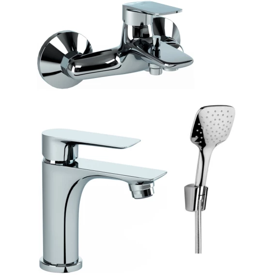 Крепление, Аэратор, Гибкая подводка, Металлическая розетка, Эксцентрики, Душевой шланг, Душевая лейка, Держатель для душевой лейки, Смеситель