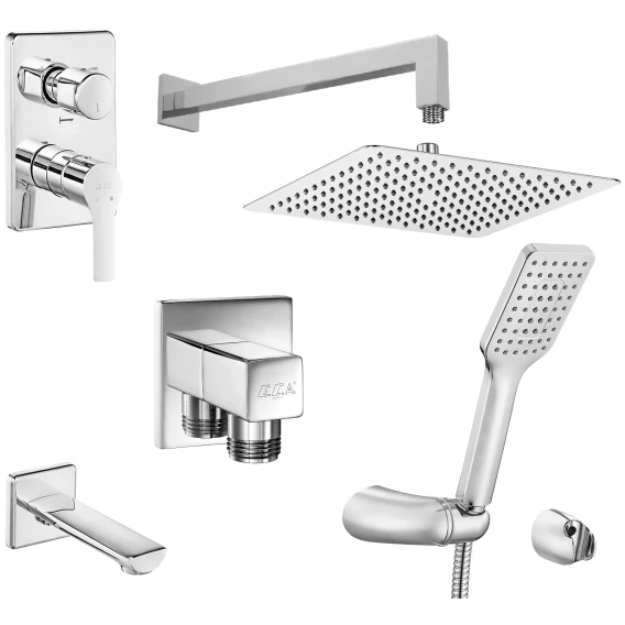 Аэратор, Душевая лейка, Держатель для душевой лейки, Подключение для душевого шланга, Верхний душ, Излив, Скрытая монтажная часть, Кронштейн