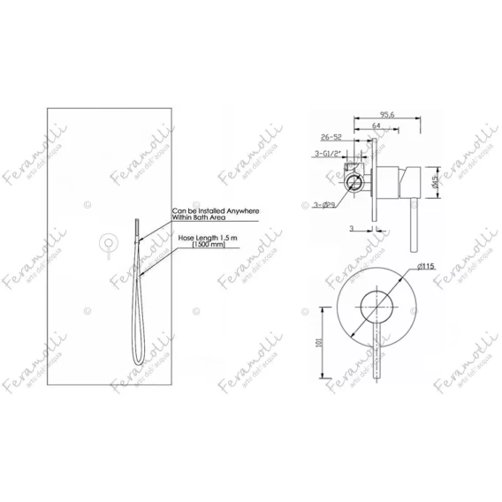 Душевой шланг, Душевая лейка, Подключение для душевого шланга с держателем, Скрытая монтажная часть, Смеситель