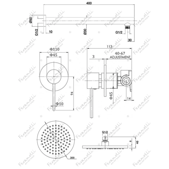 Душевой комплект 300 мм Feramolli Ele CL702-12