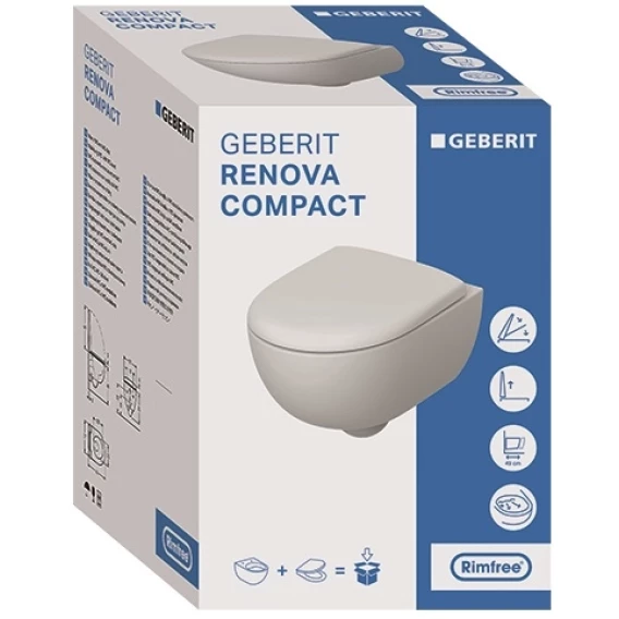 • Подвесной безободковый унитаз с сиденьем микролифт Geberit Renova Compact 500.803.00.1