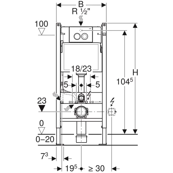 • Монтажный элемент для подвесного унитаза, H112, клавиша Delta21, 12 см (UP100) Geberit Duofix 458.122.11.1