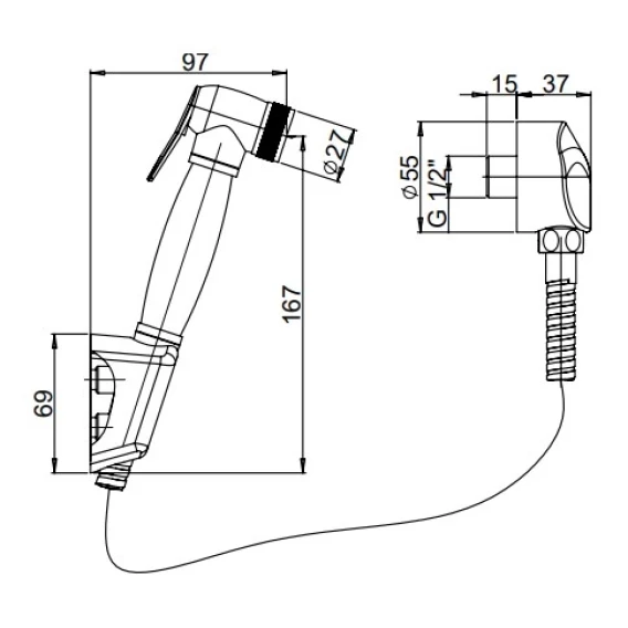 Душевой шланг, Душевая лейка, Держатель для душевой лейки, Подключение для душевого шланга