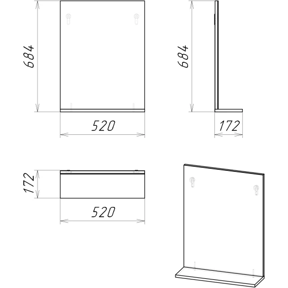 Механизм доводчика, Полочка, Ручка, Ножки, Зеркало, Тумба под раковину, Раковина