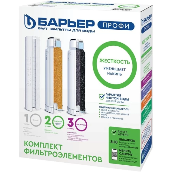 «БАРЬЕР ПРОФИ Смягчение»Фильтроэлемент с ионообменной смолой. Снижаетв воде содержание солей жесткости, способствуетумягчению воды и препятствует образованию накипи.