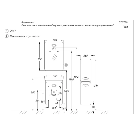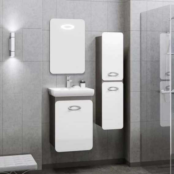 Полочка, Подсветка, Ручка, Выключатель, Розетка, Зеркало, Тумба под раковину, Раковина